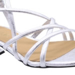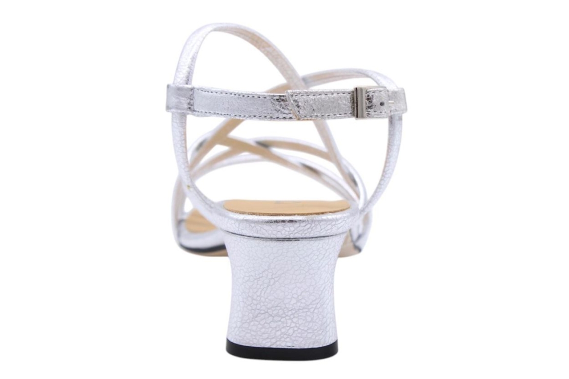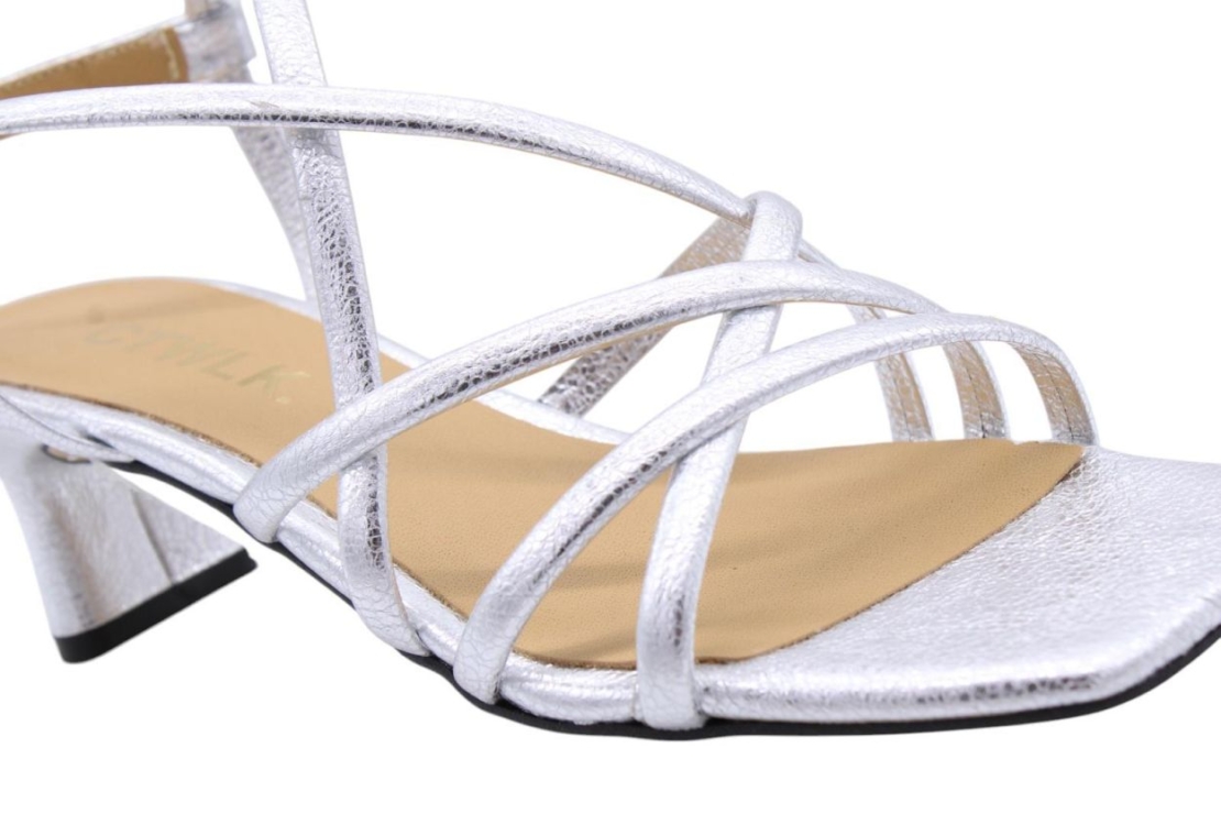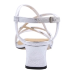 Silver colored metallic leather blockheel sandal. Leather insole. Effective height is 4 cm. Sophistication meets comfort at your feet!