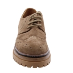 Brown-bordeaux/Niger Oscuro colored patent bootie on blockheel. Blockheel is 6cm and platform is 2cm which makes the official height an easy 4cm. Full leather lining.