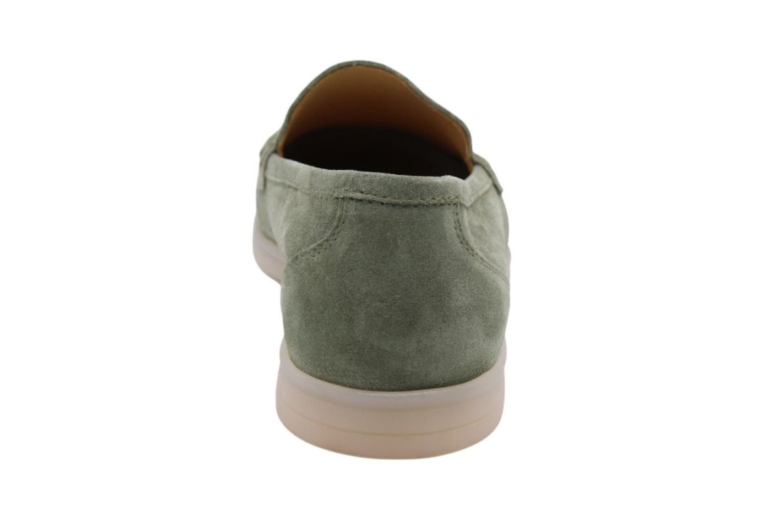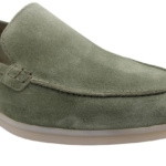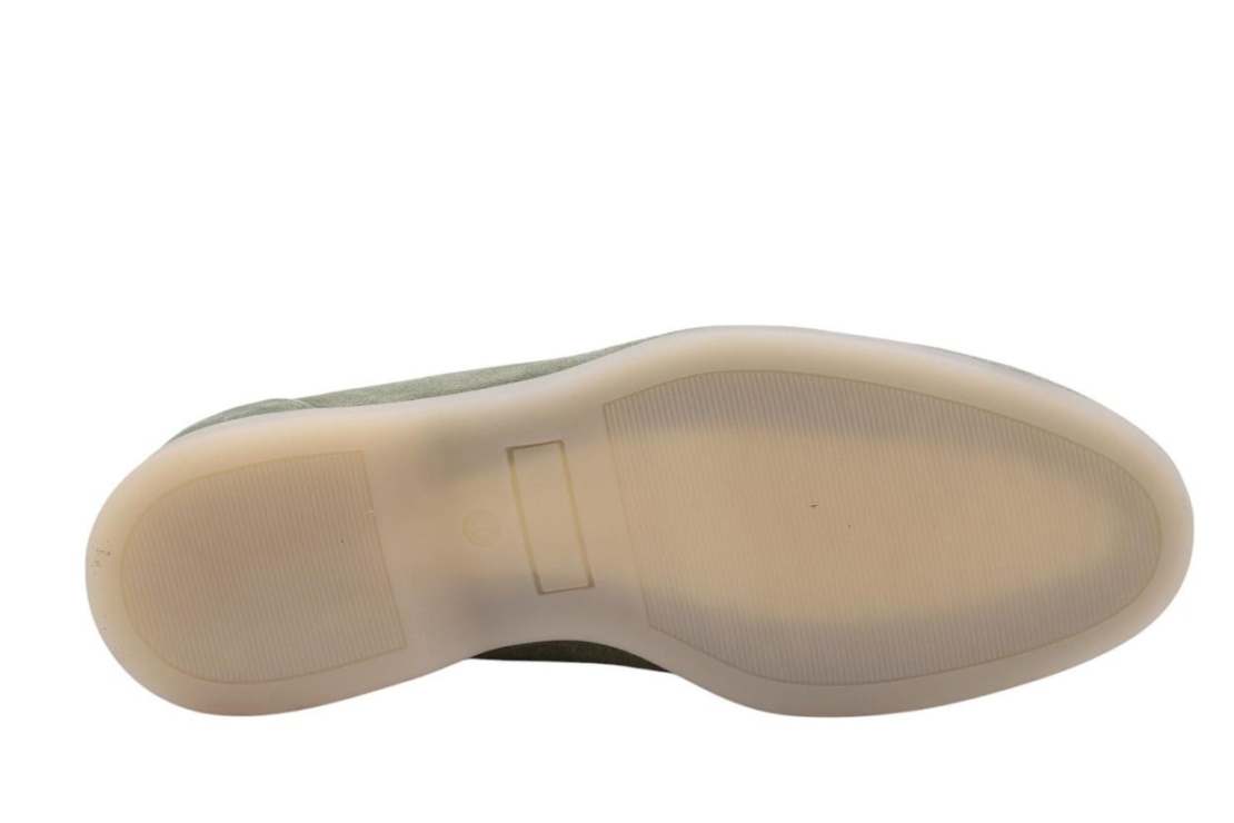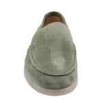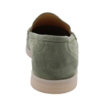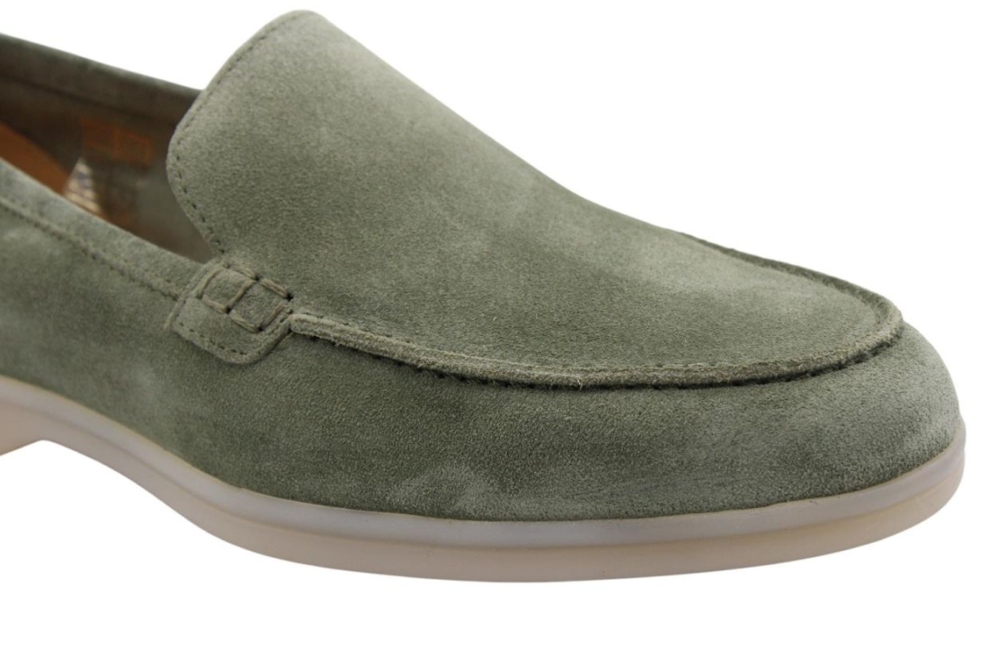 Kaki colored suede loafer moccasin. Full leather lining. Full rubber outsole.