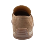 Beige natural colored suede loafer moccasin with rope detailed outsole. Full leather lining. Full rubber outsole.