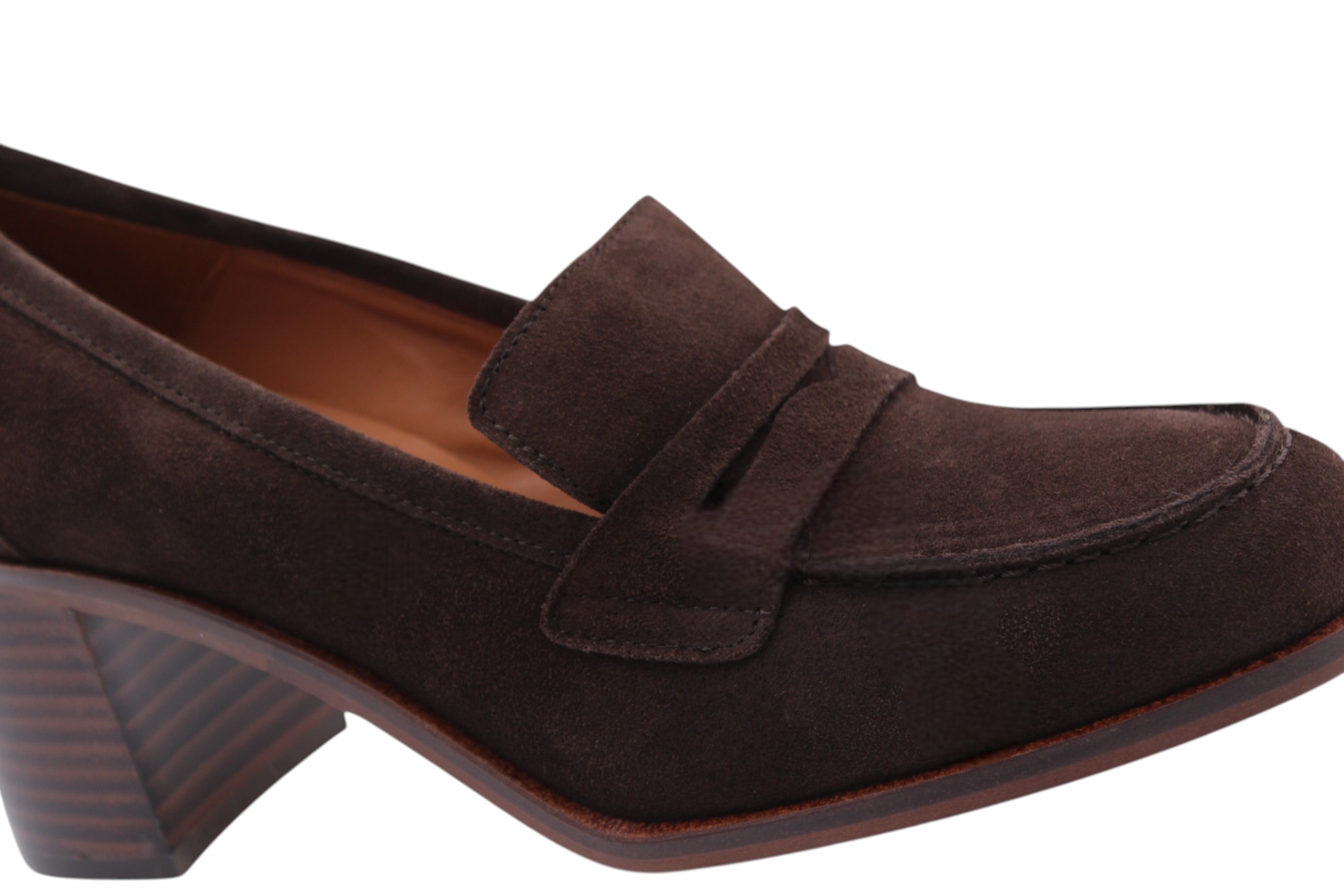 Bordeaux/Brandy colored soft patent bootie on blockheel. Blockheel is 6cm and platform is 2cm which makes the official height an easy 4cm. Full leather lining.
