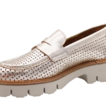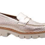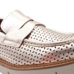 Lightgold colored metallic leather loafer moccasin. Full leather lining. Rubber lightweight outsole. Support your steps, love your day.